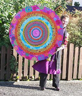 Wichtig ist mir dabei, dass Sie mir ihre Farbvorlieben nennen, denn die Farben sind der Schlüssel zur Wirkung des Mandalas auf die Seele und zum Transfer der Botschaften hinein in die Seele des Betrachters; wobei es  genügt, wenn Sie mir ungefähre Angaben wie z.B.  "Herbstfarben" , "Meeresfarben", " 4 Elemente", " Bunt im Hippie-Stil" o.ä. machen.